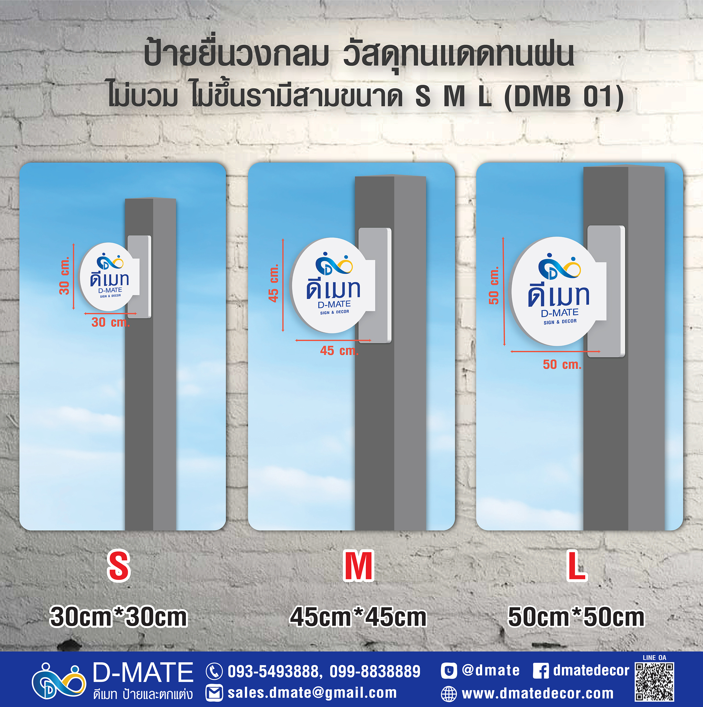 ป้ายยื่นทรงวงกลม รับผลิต ราคาเริ่มที่ 599.- - วัสดุทนแดดทนฝน ไม่บวม ไม่ขึ้นรา - งานพิมพ์ภาพ สวยคมชัด**งานผลิตตามออเดอร์ ขอให้ลูกค้าแจ้ง รายละเอียด ข้อความ แบบ ขนาด ทางเราจะแจ้งราคากลับให้ครับ S - 30cm*30cm   M - 45cm*45cm  L -  50cm*50cm   - ลูกค้าสามารถเลือกแบบอักษรดูได้จากแบบความหน้าเวปไซต์ แบบฟอนต์ดีเมท-font-d-mate - ส่งตรงทุกจังหวัด (ขนส่งเอกชน) - รับฉลุลวดลายด้วยเครื่องCNC ลูกค้าสามารถสอบถามเพิ่มเติมได้ที่ Line OA : @dmate (มี@ด้วยนะครับ) LineID : Tinno456 (สำหรับลูกค้าส่งไฟล์แบบ) Tel : 093-5493888, 098-4455353 Fanpage : www.facebook.com/dmatedecor Website : www.dmatedecor.com E-mail : sales.dmate@gmail.com พลาสวูด (Plastwood) เกิดจากการนำผง PVC มาผสมสารเคมีต่างๆรวมกัน โดยผ่านขบวนการรีดออกมาเป็นแผ่นๆ คุณสมบัติของพลาสวูด (Plastwood) ปลวก มอด แมลงต่างๆไม่กินพลาสวูด ทนทานต่อความชื้น ทนน้ำ ไม่หดตัว ทนทานต่อไฟ ไม่ติดไฟ ติดไฟแล้วจะไม่ลาม ทนทานต่อแดด สารเคมี มีความยืดหยุ่นสูง สามารถดัดโค้งได้ดี มีน้ำหนักเบาเมื่อเทียบกับวัสดุมกล้เคียงกัน สามารถเป็นฉนวนกันความร้อนและเสียงได้ สามารถคัด เจาะ ตอก ยิงแมกได้ สามารถทำสีได้ เป็นผลิตภัณฑ์ทดแทนไม้ในอนาคต ใช้ได้ทั้งภายในและภายนอกอาคาร การจัดส่งสินค้า ** ร้านอยู่ในจังหวัดอุบลราชธานี การจัดส่งต่างจังหวัด มีค่าใช้จ่ายในการขนส่งตามระยะทาง ขนาดและน้ำหนัก ** ขนาดแผ่นที่ยาวเกิน 2 เมตร ลูกค้าอาจต้องเดินทางไปรับเองที่ขนส่งปลายทาง แล้วแต่นโยบายการจัดส่งของบริษัทขนส่งแต่ละแห่งครับ โรงงานผลิตพลาสวูดฉลุลาย ของ ดีเมทเดคคอล ตั้งอยู่ในอำเภอเมืองอุบลราชธานี บริการจัดส่งฟรี ภายในเขตอำเภอเมืองอุบลราชธานี จัดส่งทางไกลจังหวัดอื่นๆ และในกรุงเทพฯ อาจมีค่าใช้จ่ายเพิ่ม ลูกค้าสอบถามก่อนได้ครับ   |