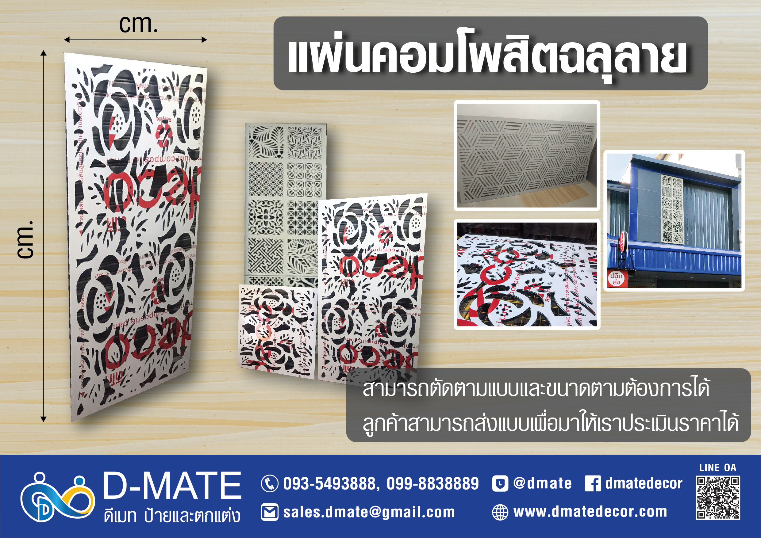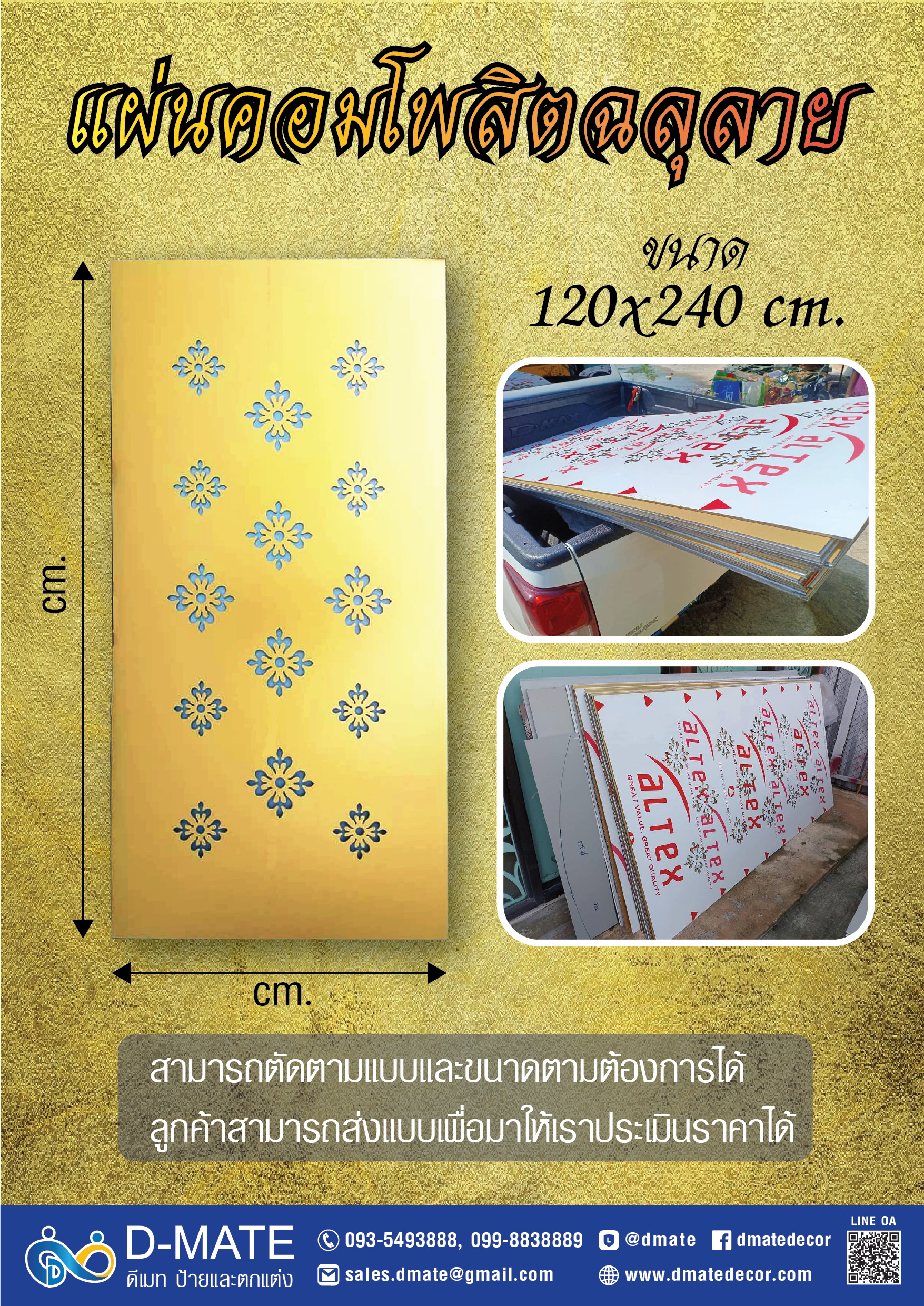 แผ่นคอมโพสิตฉลุลาย ขนาด 120x240cm เลือกลายได้ไม่จำกัด