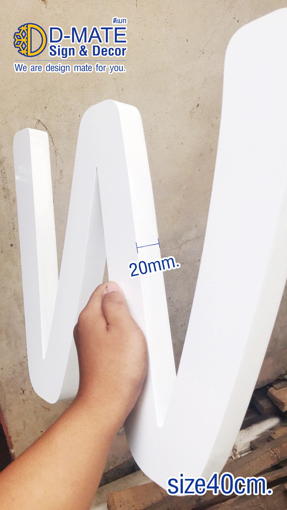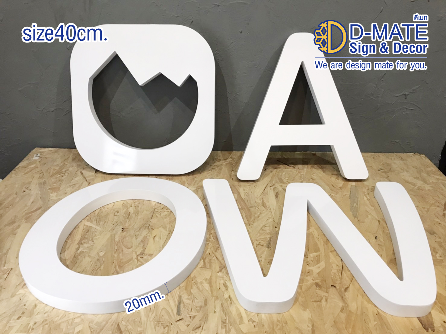 อักษรสำเร็จพลาสวูด หนา 20 มิล (ไทย/อังกฤษ) วิธีติดตัวอักษรพลาสวูด
